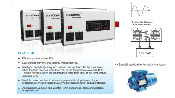 – Điện thế ra kết nối vào thiết bị có công suất nhỏ hơn Inveter.